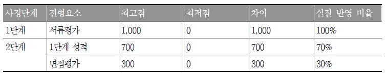 - 면접 대상자 중 면접 결시자와 면접평가 점수가 일정 수준 이하인 경우 선발 대상에서 제외