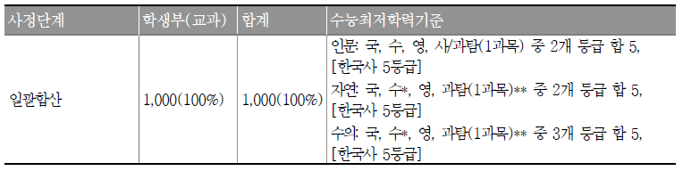 ※ 계열별로 명시된 수능최저학력기준의 모든 영역을 반드시 응시하여야 함.