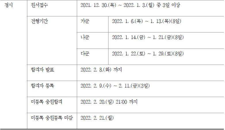 우 본교 대학입학전형관리위원회의 결정에 따라 별도의 추가모집을 실시할 수 있음.