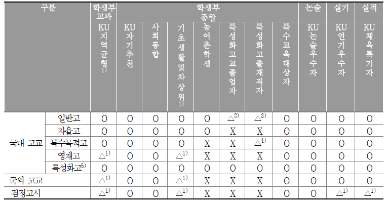 (1) 대상: 학생부종합(KU자기추천, 사회통합, 특성화고교졸업자, 특수교육대상자)의 1단계 합격자