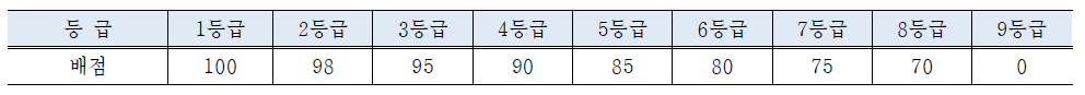 라. 수능 ‘한국사’는 전 계열 4등급 이상 만점, 5등급 이하부터 환산총점에서 0.2점씩 감점함