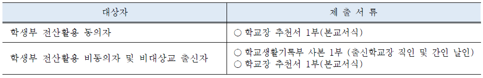 6. 제출서류 : 학교생활기록부(또는 대체서식), 자기소개서