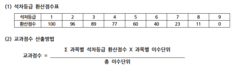 ※ 2009 개정교육과정 이전 교과점수는 2009 개정교육과정에 준하여 본교가 정한 기준에 따라 산출함