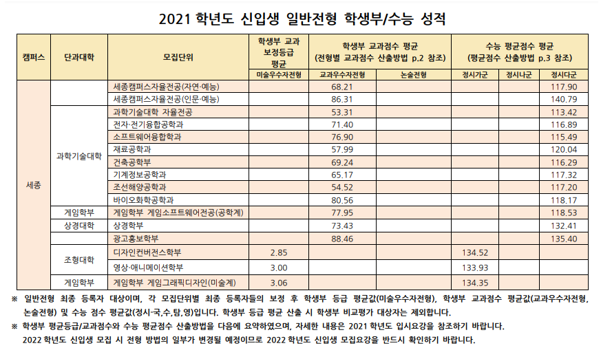 ※ 전학년 평균등급 산출방법에 대한 자세한 내용은 2021 학년도 입시요강을 참조하기 바람
