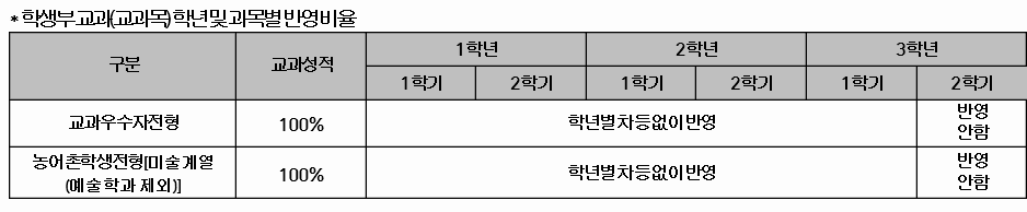 ※ 반영교과군의 각 교과별 상위 3 과목씩 총 12 과목의 석차등급을 학년구분 없이 반영함