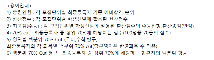 한국외국어대학교 정시 최종등록자 수능 백분위 70%컷