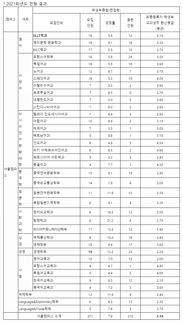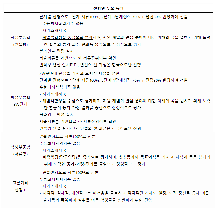 - 2021학년도에 서류형을 신설하여 지원자에게 다양한 기회를 부여함