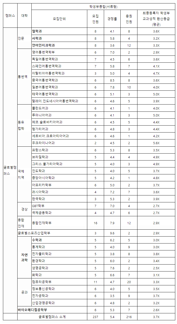 - 서류형은 학업우수형으로 서류평가100%로 최종 합격자 선발(수능최저학력기준 없음)