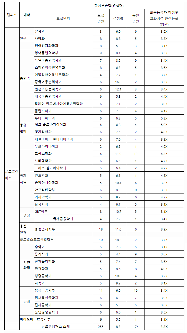한국외국어대학 학생부종합전형 평가 주안점 및 전형별 특성