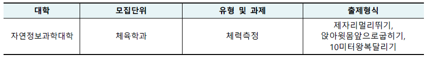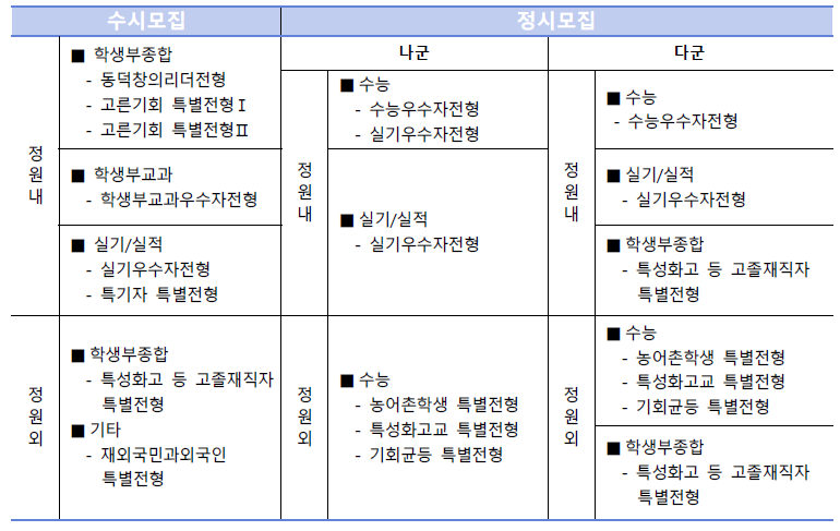 ※ 대학수학능력시험 성적을 반영하는 전형의 지원자는 한국사영역을 반드시 응시해야 하며, 취득 등급에 따라 가산점을 부여함(하단 가산점 Ⅱ 참조)