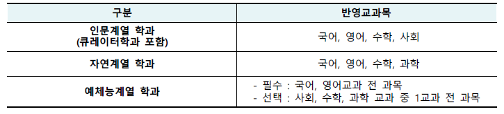 ※ 탐구영역은 사회탐구 또는 과학탐구를 원칙으로 함