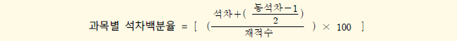 과목별 석차를 석차백분율로 계산하여 등급을 정하고 그 등급에 따른 점수를 부여하여 반영함