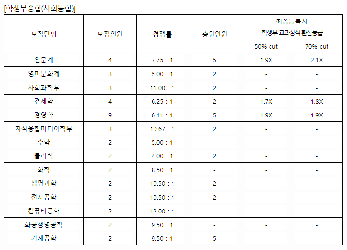 서강대학교 2021학년도 학생부종합전형(사회통합)입시결과
