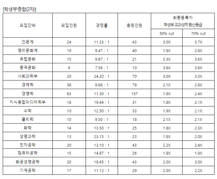 서강대학교 2021학년도 학생부종합전형(2차 학업형)입시결과