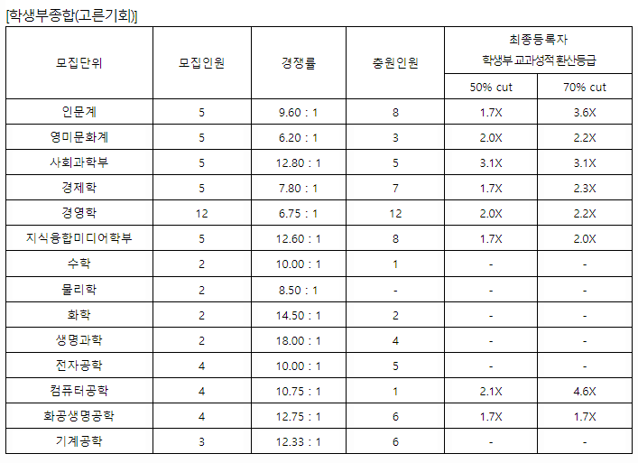 서강대학교 2021학년도 학생부종합전형(고른기회)입시결과