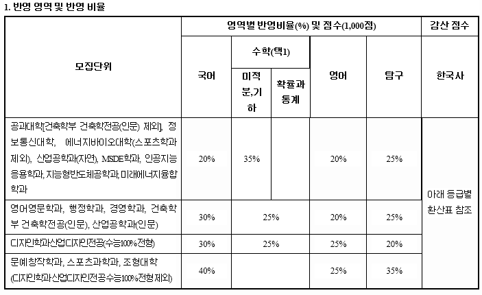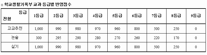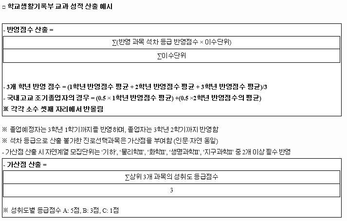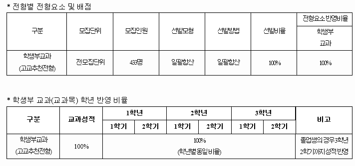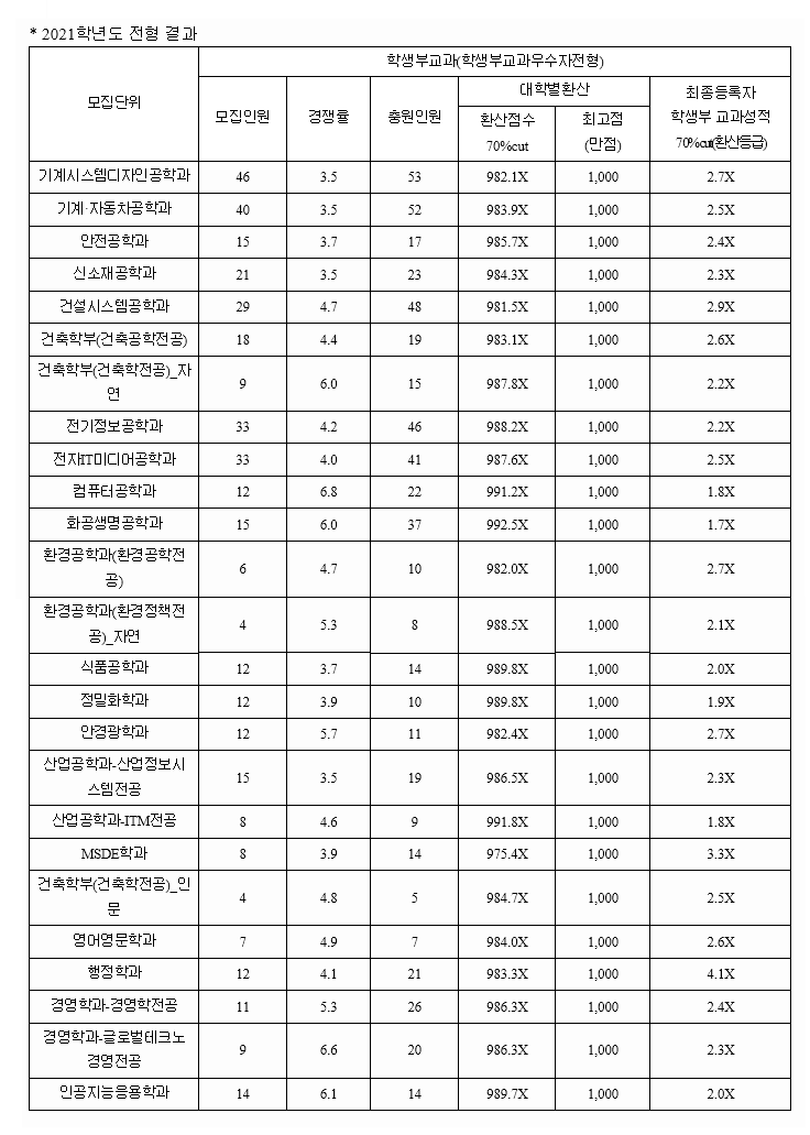 2021학년도 학생부교과전형 반영비율 및 교과성적 산출방법