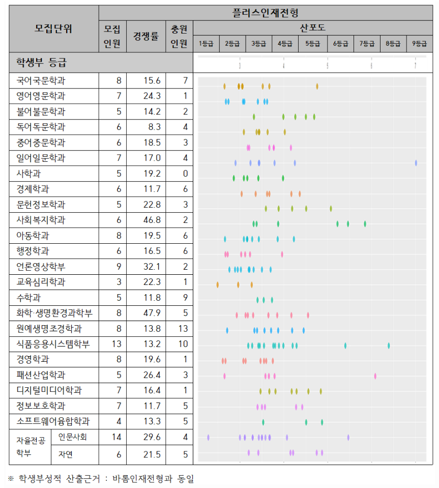 서울여자대학교 2021학년도 플러스인재전형 산포도
