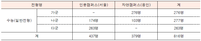 ※ 인문사회계열: 인문대학, 사회과학대학, 경영대학, 법과대학, 전공자유학부(인문), 융합전공학부(인문), 미래융합대학, 건축대학 공간디자인전공