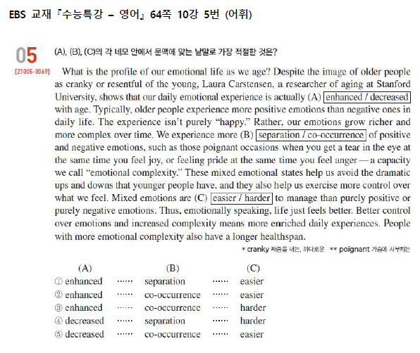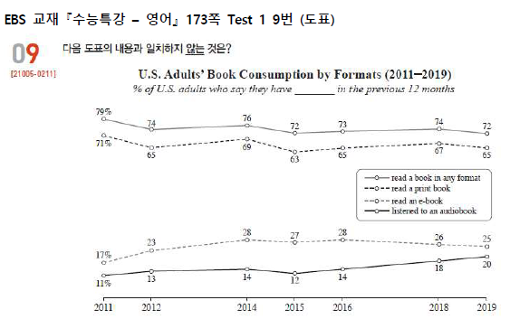 - 교육부에서 발표한 2022학년도 대학입학제도 개편방향 및 고교교육 혁신방향(2018.8.17.)에 따라 EBS연계율을 기존 70%에서 50%로 축소하고, 모두 간접연계로 전환하여 출제하였다.