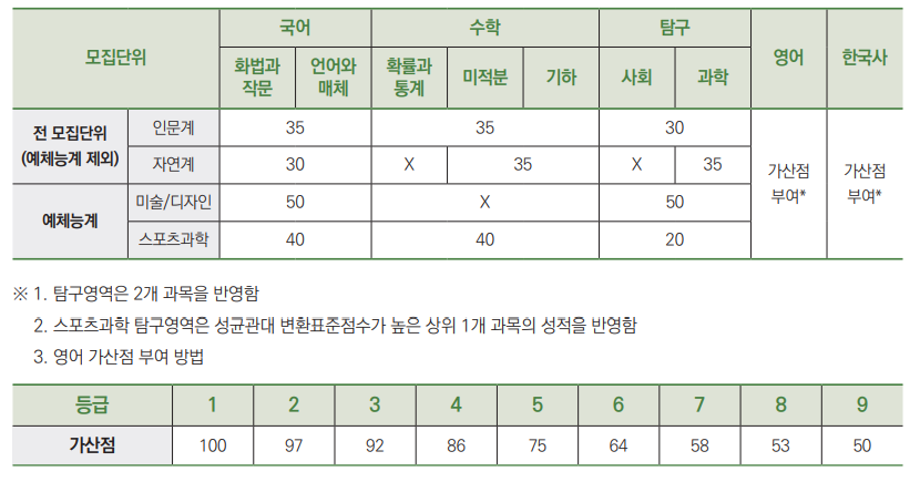 3. 수능 영역별 반영비율