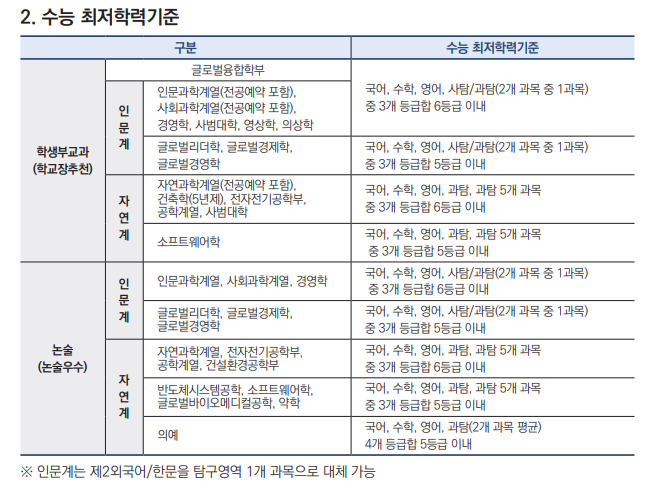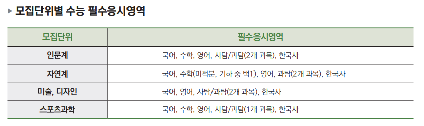 수능 필수 응시영역 및 최저학력기준