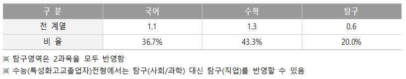 - 대학수학능력시험 영역별 가중치(전 계열)