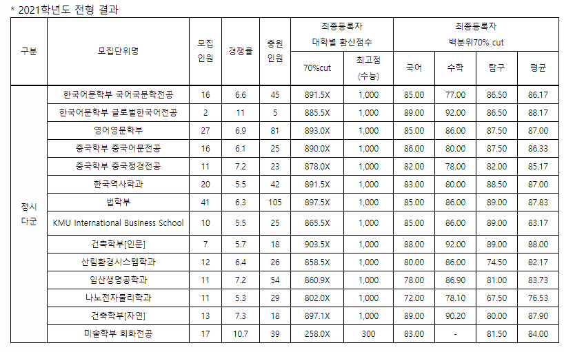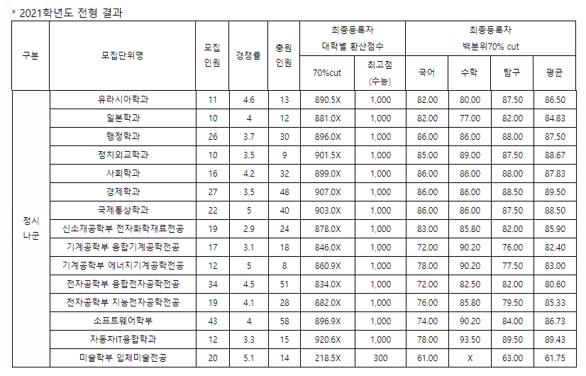 | 지방국대 8등급도 합격. 주요대학교별 정시 합격선 변화(2020 VS 2021) (0) | 2021.07.26 |