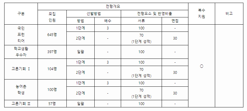 ※ 서류평가 혹은 종합순위 상위 70%의 교과 성적을 의미하는 것이 아님