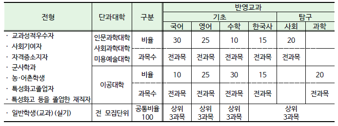 3) 탐구영역의 반영과목에 대한 제한을 두지 않으며, 2과목의 평균을 반영함