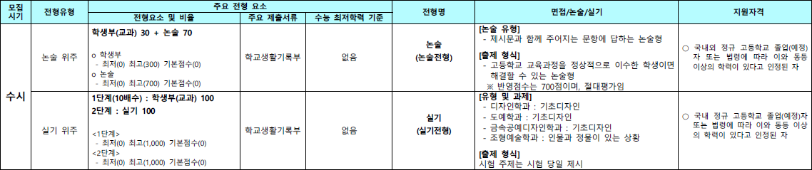 - 정시모집 수능 선발 비율 2.4% 확대 : 860명, 37.5% 선발