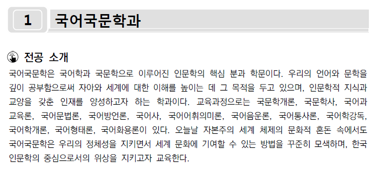 국어국문과 관련 학과소개 및 수시합격사례등급입니다.