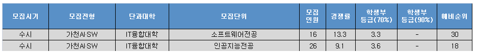 가천대학교 2022학년도 가천 AI.SW 전형 학생부등급컷
