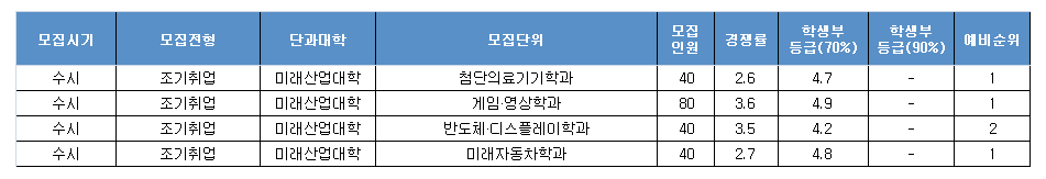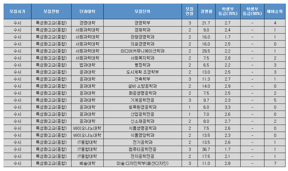 가천대학교 2022학년도 학생부 특성화고교(종합) 전형 학생부등급컷