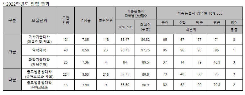 | 고려대학교 2022학년도 합격자 수시 정시 결과 (0) | 2022.07.12 |