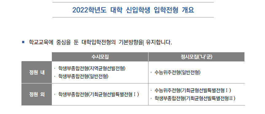 ∙ 2021학년도와 동일한 기조를 유지함(단, 면접시간 및 평가내용 등 일부 사항이 변경될 수 있음)