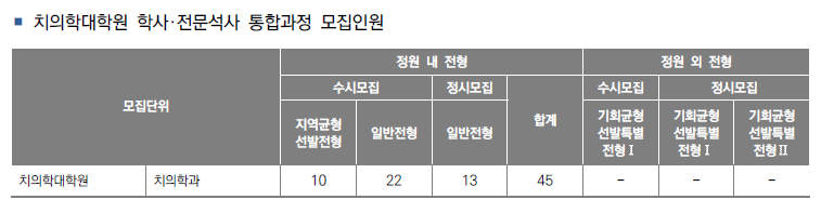 * 치의학대학원 학사·전문석사 통합과정 모집인원 45명 포함