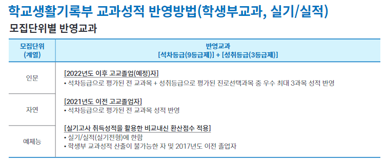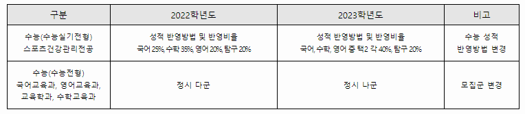 ※ 대학수학능력시험 성적 적용 2개 영역 미응시자의 경우 불합격 처리