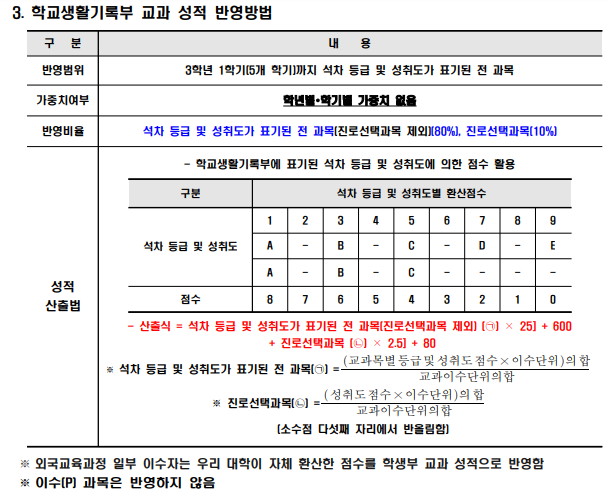 ※ 탐구영역 반영방법: 두 과목 등급 합계/2 (두 과목의 등급 평균)