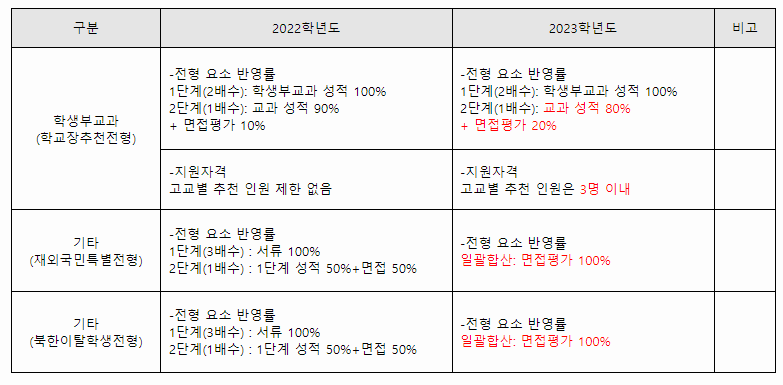 2023학년도 학생부교과 학교장추천전형 수시요강