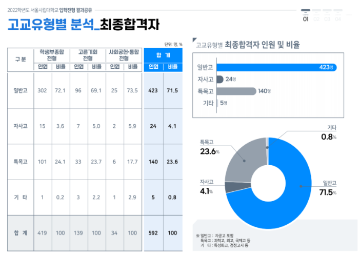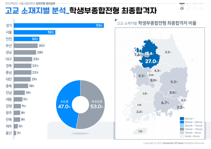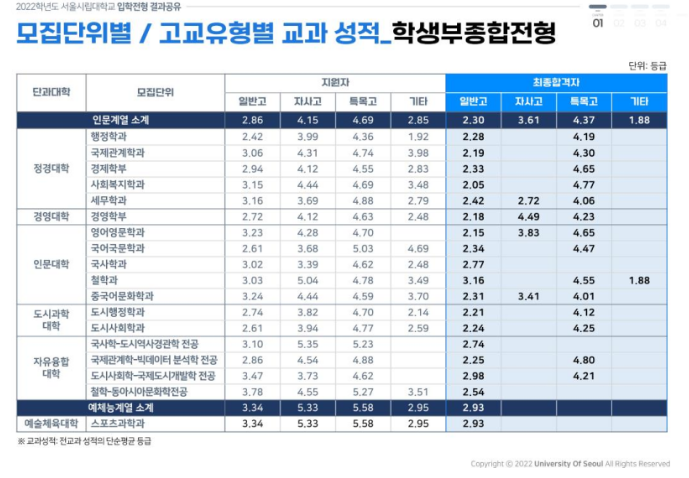 서울시립대학교 2022학년도 학생부종합 수시등급 50%컷 70%컷