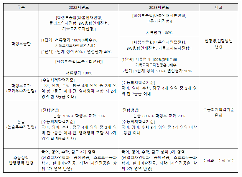 서울여자대학교 2023학년도 주요 변경사항