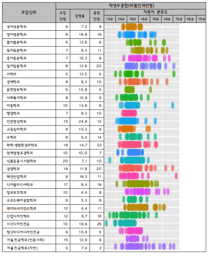 서울여자대학교 2022학년도 학생부종합(바롬인재전형)합격자 수시등급