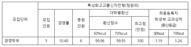 - 특성화고교출신자전형(정원외)