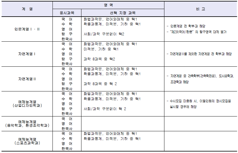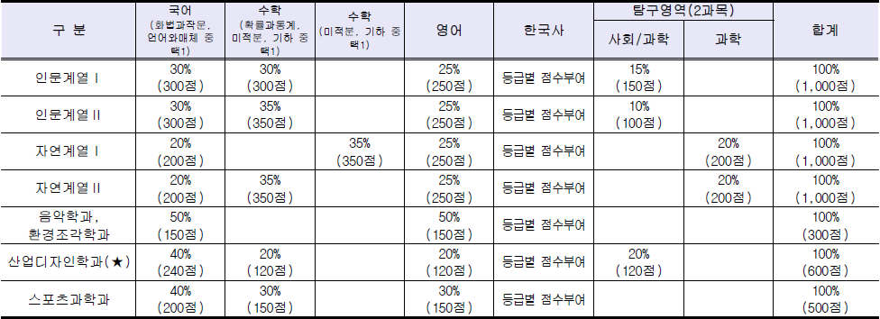 ※ 인문계열 탐구영역 반영 시 제2외국어 또는 한문 영역을 1개 과목으로 대체 불가.