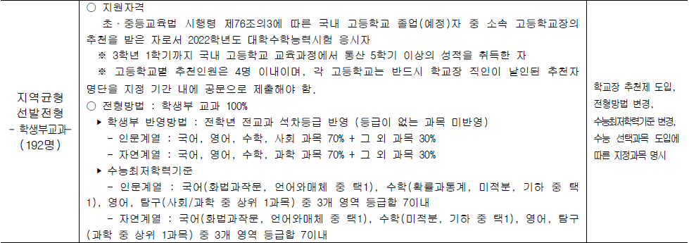 - 전 형 명 : 지역균형선발전형(학교장 추천제)