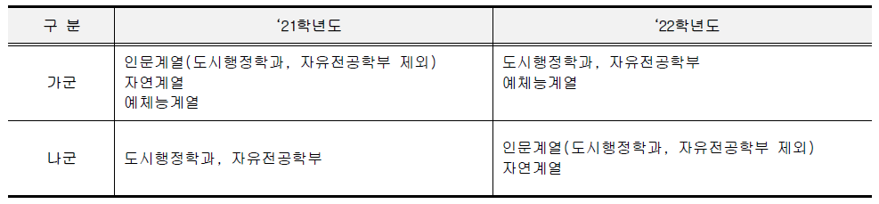 ※ 자연계열Ⅰ : 자연계열Ⅱ를 제외한 자연계열 전 학부·과 / 자연계열Ⅱ : 건축학부(건축학전공), 도시공학과, 조경학과