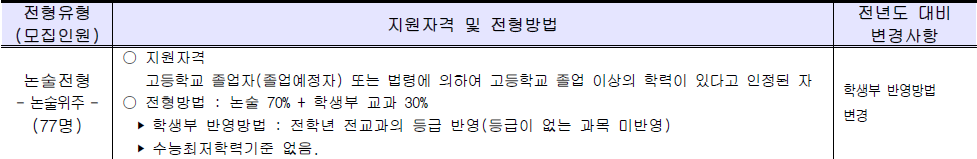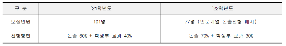나. 논술전형 모집인원 감축 및 전형방법 변경