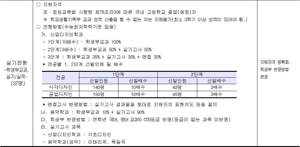 라. 학생부종합전형 모집인원 감축 및 전형방법 변경수시모집 전형유형별 지원자격 및 전형방법