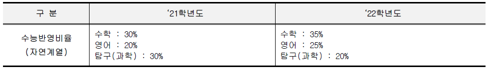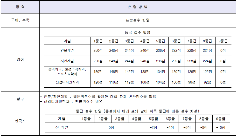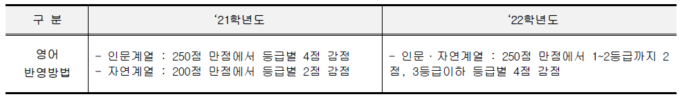 자. 정시모집 인문·자연계열“영어 반영방법”조정