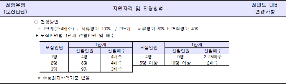 - 전형방법 : 학생부 교과성적 100% (전학년 전교과 석차등급 반영)
